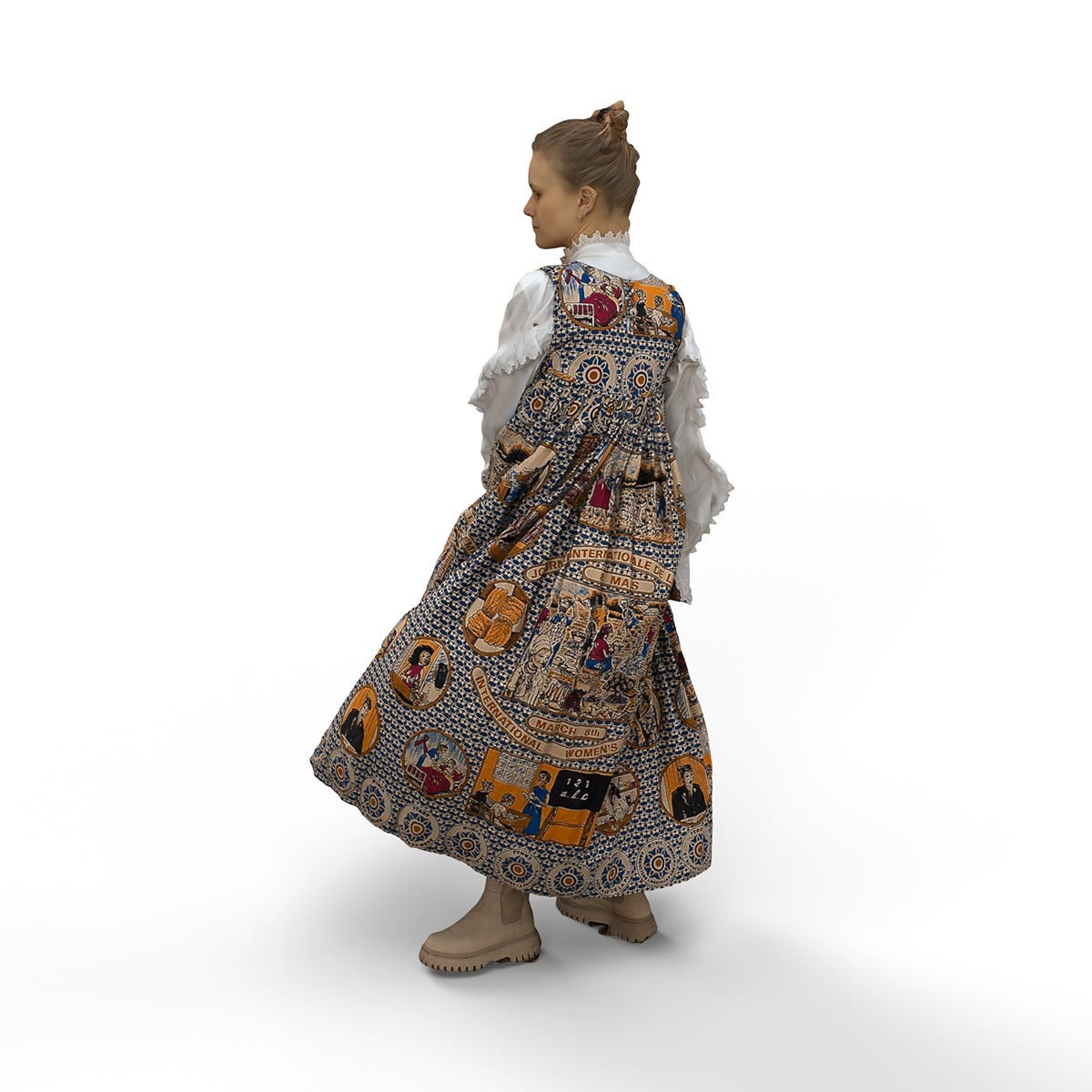 The images above show how much detail can be captured in volumetric video capturing. The drawings and texts are reproduced in great detail in ‘African dress’, in honor of International Women’s Day. The movement of the dress also shows how the fabric itself moves, how thick the material is and by walking around the images are displayed even better