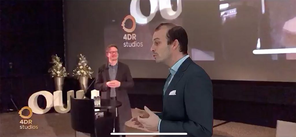 Een week voor het event maakten we een driedimensionale digital twin van de wethouder in onze studio die zijn presentatie gaf. Via augmented reality projecteerden we deze 3D-beelden een week later tijdens het event op het podium. Het verblufte publiek gaf Stijn Steenbakkers de volle aandacht en waardering. Hij had nog nooit zo’n efficiënte werkdag gehad!